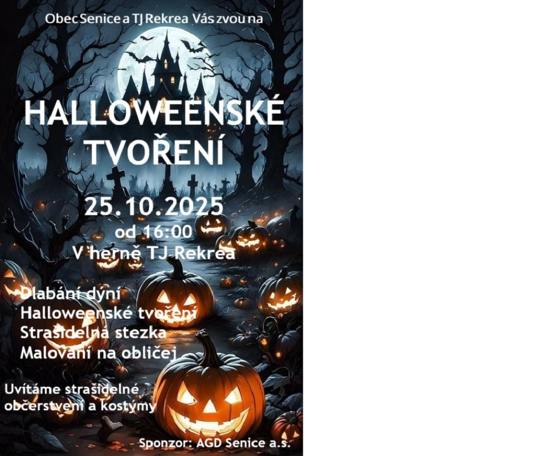 Obec Senice ve spolupráci s TJ Rekrea Vás srdečně zvou na HALLOWEENSKÉ TVOŘENÍ.