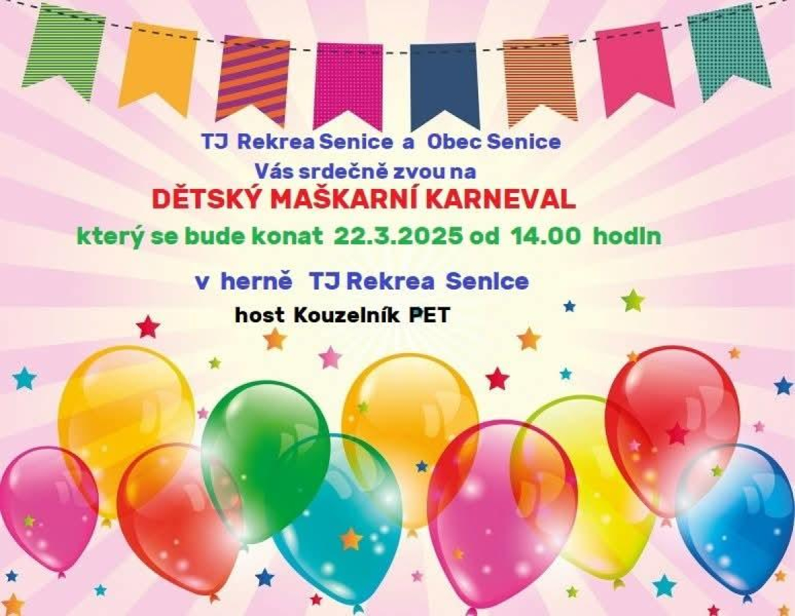 TJ Rekrea Senice a Obec Senice Vás srdečně zvou na DĚTSKÝ MAŠKARNÍ KARNEVAL