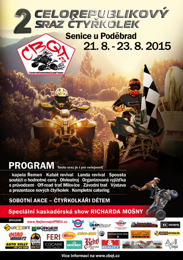 Ve sportovním areálu se uskuteční ve dnech 21 – 23.08.2015 sraz příznivců čtyřkolek. Pořadatelem je CentralBohemiaQuadTeam, z.s. z Pátku.