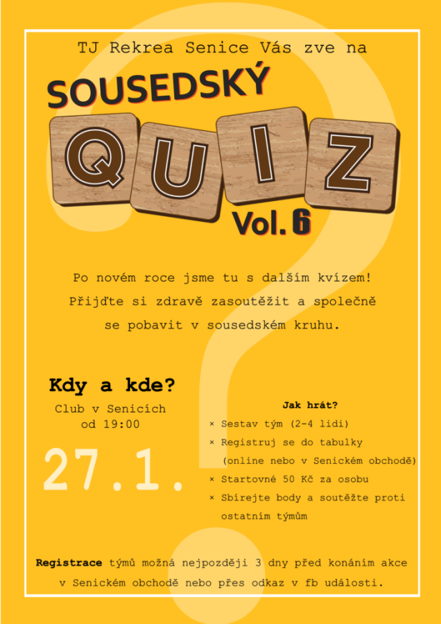 který se uskuteční 27.1.2024 v Clubu v Senicích.
